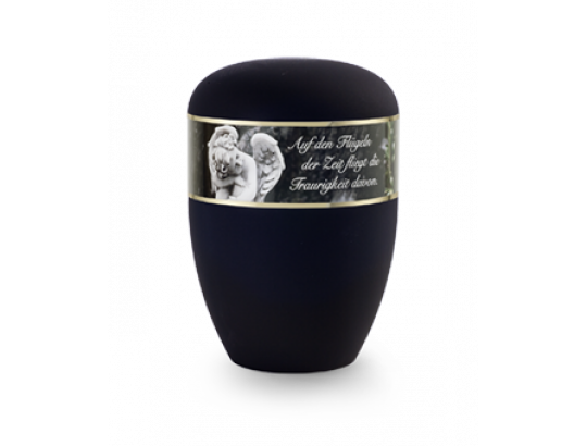 VU_9915Die Feder verkörpert Leichtigkeit, Flüchtigkeit, Höhe und Raum und ist oft auch ein Bild für die Seele. Sie ermöglicht die Verbindung zu anderen Welten und verknüpft Leben und Tod.Sie ist ein Bote aus dem Jenseits und hat Beziehung zum himmlischen Bereich des Lichts und der Sonne.Die Urnen der Edition Antiqua besitzen eine tiefschwarz samtierte Obe..