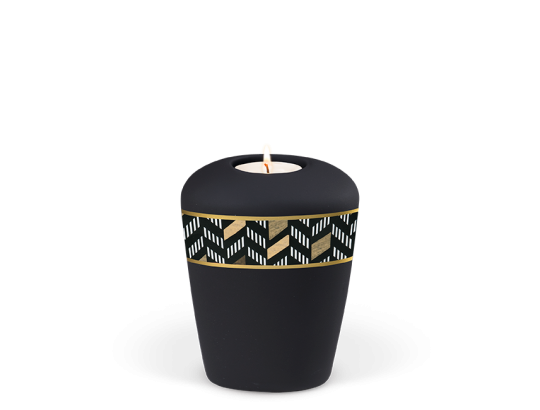 Keramikurne, Anthrazit Velours, Goldband gebürstet Gedenkurne mit Teelicht