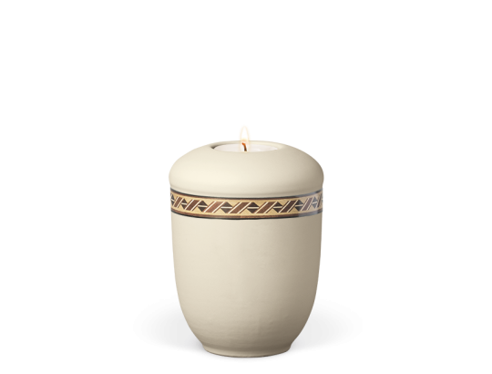 Keramikurne, Beige-Velours Dekor: Rautenkordel Gedenkurne mit Teelicht