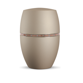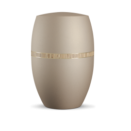 Edle gold schimmernde Dekore in gebürsteter Optik mit gold glänzend abgesetzten Streifen und einem dunklem Verlauf am Rand des Dekors heben die hochwertige Optik der Urne hervor.