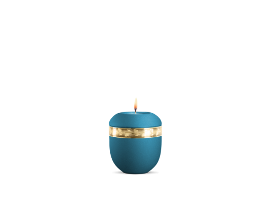 Gedenklicht, Infinity Livorno, velvet Arctic Türkis, gebürstetes Golddekor Ast