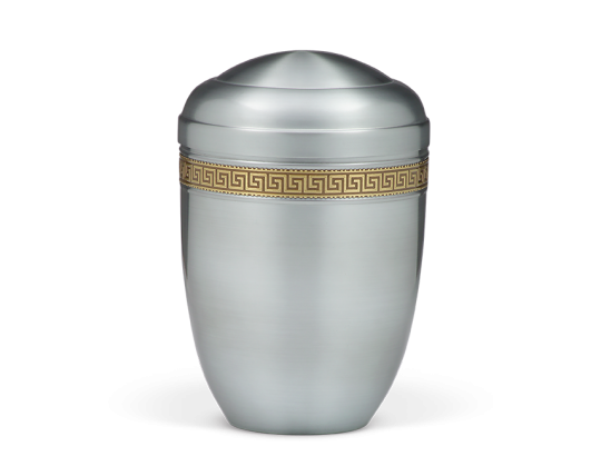 VU_372ASIDie Kupfer-Urne besitzt eine versilberte, galvanisch gefärbte Oberfläche. Verziert wird die Urne mit einem umlaufenden Mäanderdekor...